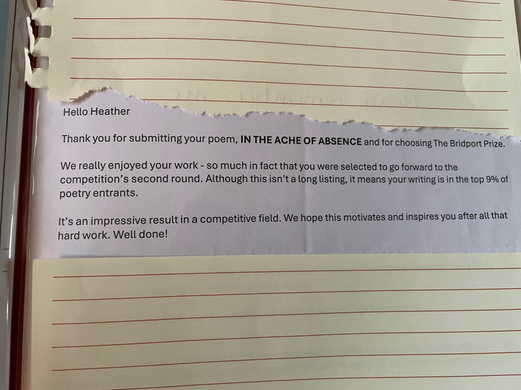 Well, I didn’t win. And I wasn’t long listed. But I did get through the first round. I know that because they wrote and told me – making sure to say that a second round result is still a ‘big achievement”. I haven’t shared the poem that I entered until now. Here it is.